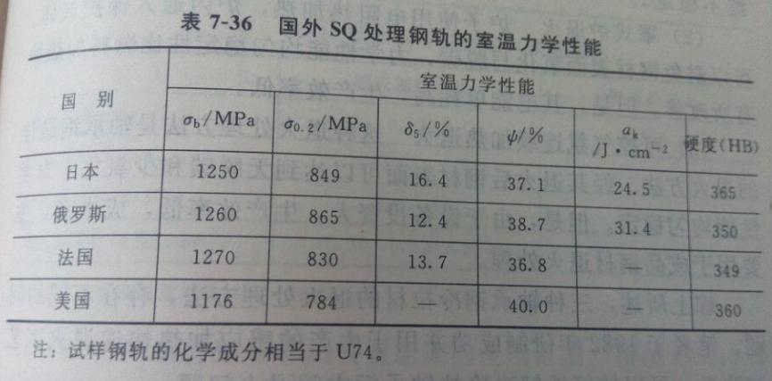 圖2給出了國(guó)外SQ處理鋼軌的室溫力學(xué)性能。對(duì)比國(guó)產(chǎn)鋼軌的室溫力學(xué)性能,可以看出國(guó)產(chǎn)SQ處理鋼軌的力學(xué)性能完全達(dá)到了國(guó)外同類產(chǎn)品的水平。