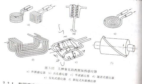 高頻淬火感應(yīng)器常用銅管制作,結(jié)構(gòu)輕巧,制作比較方便。圖7-32所示為幾種常見(jiàn)的高頻加熱感應(yīng)器。